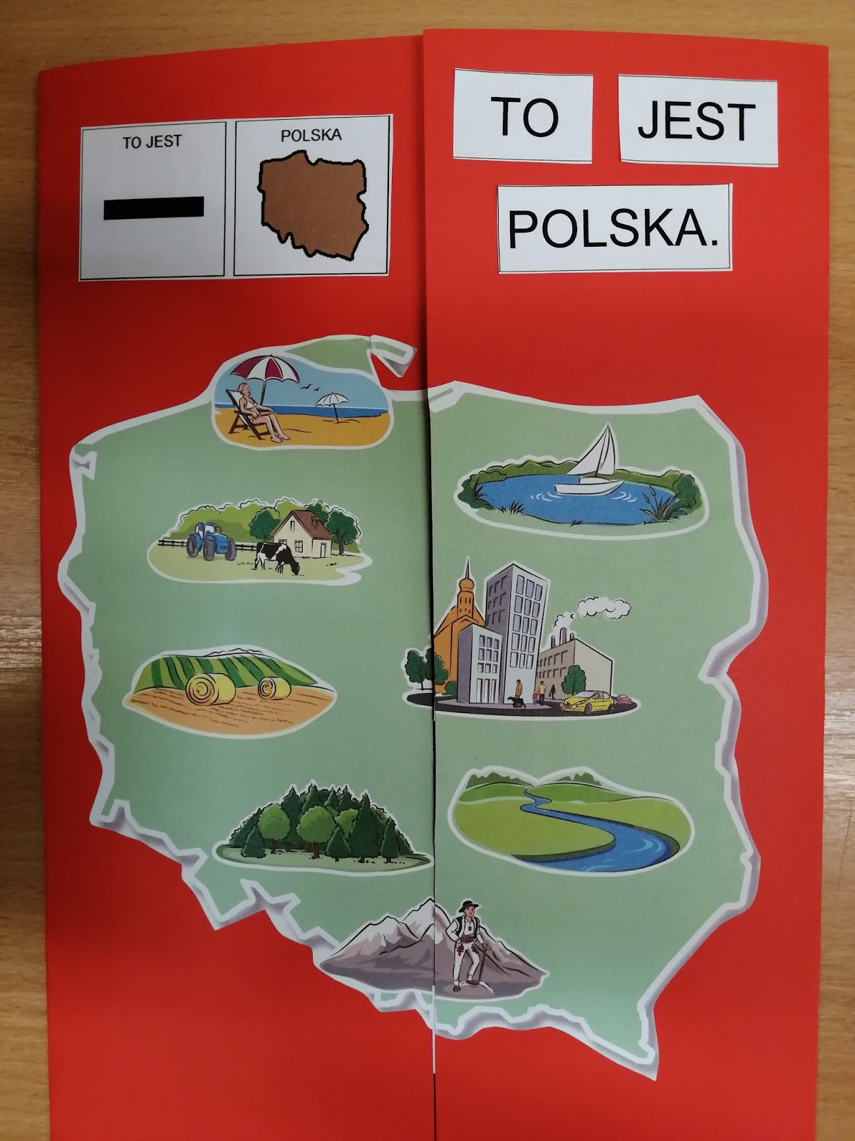 Z kolejnym uczniem podczas zajęć rozwijających komunikowanie się przygotowaliśmy inną wersję ruchomej książki o Polsce.